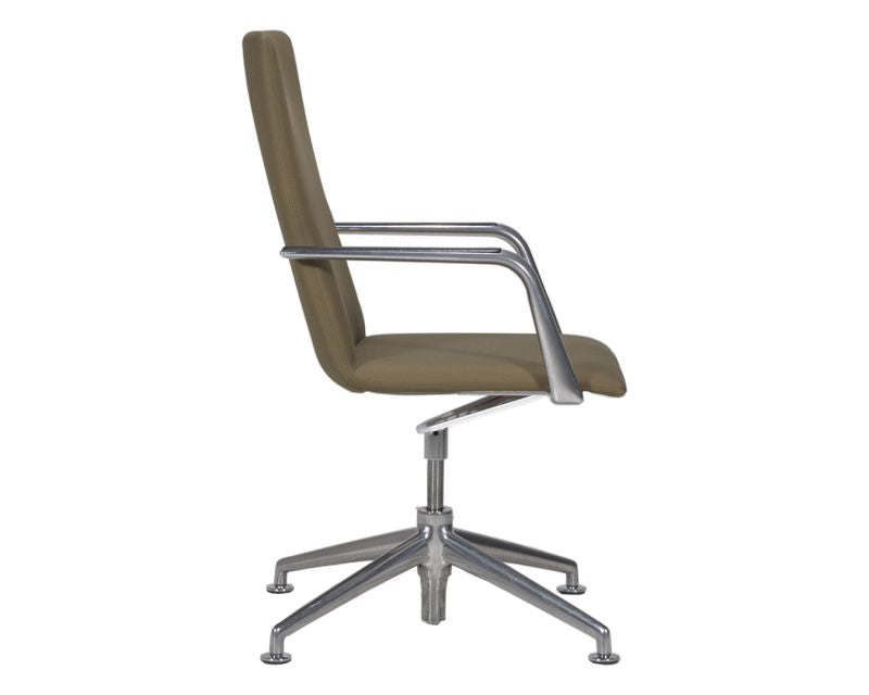 Dieses hochwertige Modell, entworfen vom renommierten Designer Wogang C.R. Mezger, überzeugt durch sein modernes Design und seine vielseitigen Funktionen. Der Stoffbezug in Olivgrün ergänzt das polierte Aluminiumfußkreuz perfekt und verleiht dem Stuhl eine elegante und professionelle Optik. Mit seinen offenen Ringarmlehnen bietet der Fina Konferenzstuhl erstklassigen Sitzkomfort, der speziell für lange Meetings oder intensive Arbeitszeiten entwickelt wurde.
