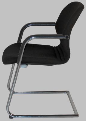 Ausgestattet mit einem robusten Chromgestell und einem durchgehend schwarzen Finish – inklusive Rückenlehne, Sitzfläche und Armlehnen – bietet dieser Stuhl eine stilvolle Sitzgelegenheit für professionelle Umgebungen. Die ergonomische Form der Rückenlehne passt sich dem Rücken optimal an und sorgt für hohen Sitzkomfort, selbst bei längerem Verweilen.